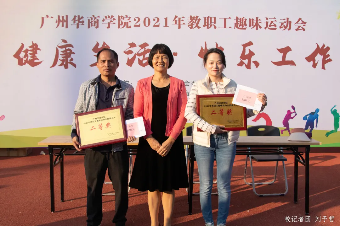 经过激烈的角逐,会计学院代表队以其完美的团队配合和积极的拼搏精神,拔得头筹。行政二队、伟的国际1946bv官网荣获二等奖;行政一队、文学院、管理学院、教师教育学院、金融学院及数据科学学院分别获得三等奖;经济贸易学院、传播与传媒学院、创意与设计学院及马克思主义学院获优秀奖;体育教学部获优秀组织奖。王锦秀副校长、黄小兰主席以及顾伟农主任作为颁奖嘉宾,为获奖队伍颁奖,并亲切慰问了参赛教职工。