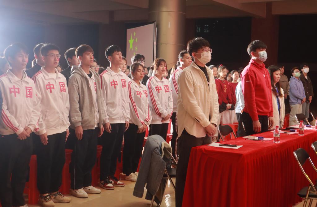 2021年12月3日晚,新伟德国际1946庆祝中国共产党成立100周年“忆党史百年 颂峥嵘岁月”第十届校园红歌会在启智楼一楼举办。学校党委委员、党委办公室主任吕书勉老师,学校党委委员、武装部部长黄国富老师,学校党委委员、数据科学学院党委副书记蒋大锐老师,学校党委宣传部部长刘苗老师,校团委副书记陈刚老师,二级党组织(副)书记、组织员和师生代表参加活动。
