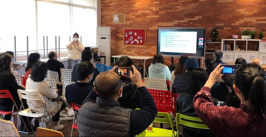 在交流环节,老师们与Rong博士就大学管理中学生作业成果资料数据运用进行积极的交流。