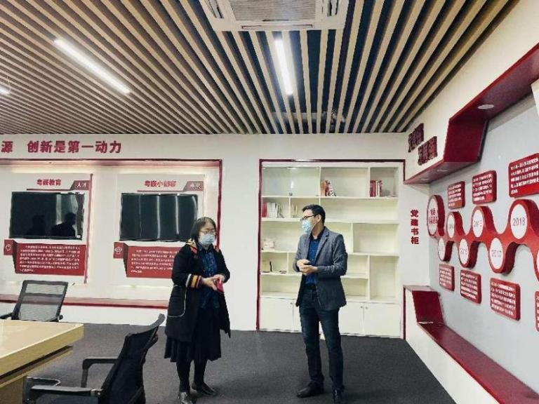 程辛荣副校长一行在粤嵌科技副总经理邓人铭等人的陪同下,参观粤嵌科技,并考察粤嵌创新成果展示廊及众创空间,全方位感受粤嵌的环境和工作氛围。