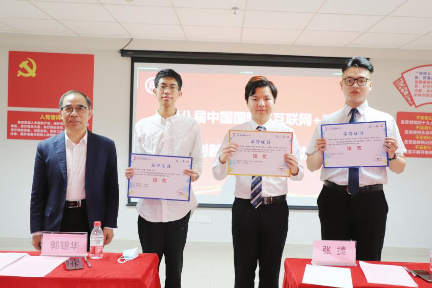 郭银华执行校长为荣获第七届“互联网+”省赛银奖团队颁发荣誉证书