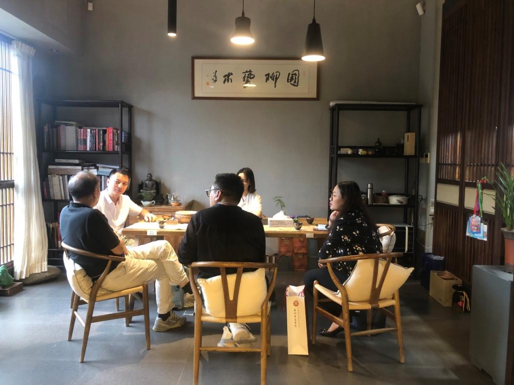 王列耀副校长一行首先走访了青年翡翠雕刻艺术家、新中坚“岭南工美青年百人培养计划”首批10位青年艺术家之一的郑国柳工作室。