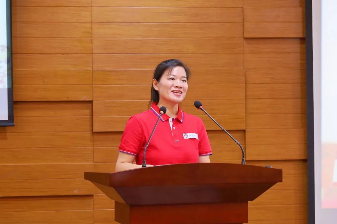 教练员代表文陵桃发言。她首先代表全体教练员对学校领导的支持和运动员的配合表示感谢。她表示,在本次比赛中,全体教练员将发挥华商人敢打敢拼、迎难而上的光荣传统,秉承“运动场下多流汗,运动场上不掉链”的精神,用系统的训练方式、科学的训练方法带领参赛队员切实提升运动竞技水平。