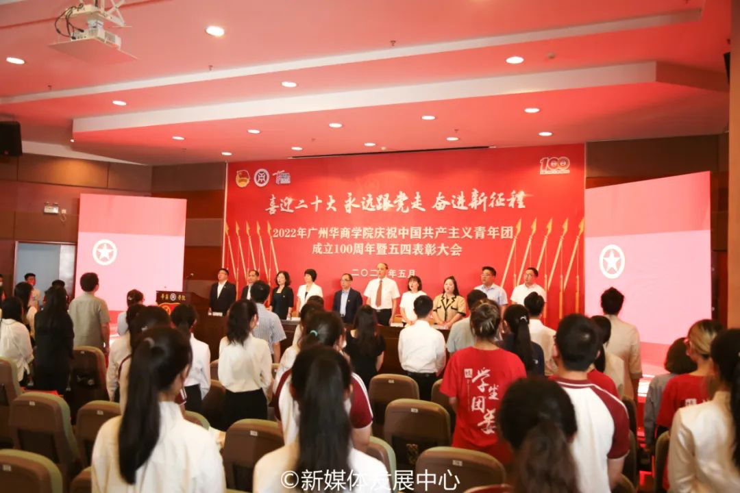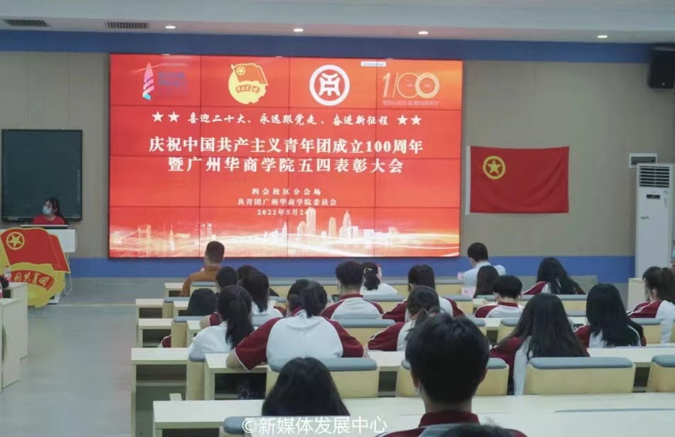 为深入学习宣传贯彻习近平总书记在庆祝中国共产主义青年团成立100周年大会上的重要讲话精神,引导广大华商青年争做理想远大、信念坚定、刻苦学习、锐意创新、敢于斗争、善于斗争、艰苦奋斗、无私奉献、崇德向善、严守纪律的模范,以更加昂扬进取的精神面貌为党的二十大胜利召开献礼,推动共青团思想引领取得更加扎实的工作成效,5月24日中午,校团委在国际会议中心四楼报告厅举行“喜迎二十大 永远跟党走 奋进新征程”新伟德国际1946庆祝中国共产主义青年团成立100周年大会暨2022年五四表彰大会。根据校园疫情防控常态化要求,本次大会设立增城校区主会场,四会校区分会场。采用线上线下结合方式,同步进行网络直播,供华商师生观看学习。