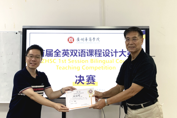 本次大赛以一门全英双语课程中一节课的教学内容为蓝本,以说课的形式开展。参赛选手依次呈现了自己的教学方案,教师们以自信、流利的英文展示了他们各具特色的说课。他们精彩的演示、创新的教学方案让评委与观众眼前一亮。罗碧慧老师结合使用手机应用程序,增加师生互动与课堂的趣味性,而同时又不失教学的严谨性和专业性;周敏仪老师用图表的形式解释学生容易混淆的概念,生动有趣;周国辉老师以师生课堂互动的实例展示其课堂特色。评委针对每位教师的说课提出问题,选手作答;评委指出教师们需要完善和改进之处。