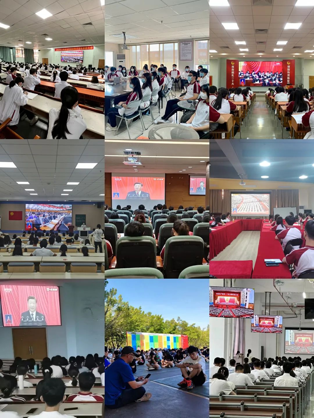 为深入学习贯彻大会精神,我校积极部署,以“主会场+分会场”的形式,组织两校区全体校领导、机关党员干部、二级党组织负责人、教师代表、学生骨干代表、班级学生代表共计1700多人在19个分会场集中收看,其余2万余名师生全部自行收看中国共产党第二十次全国代表大会现场直播,认真聆听习近平总书记代表第十九届中央委员会向大会作报告。