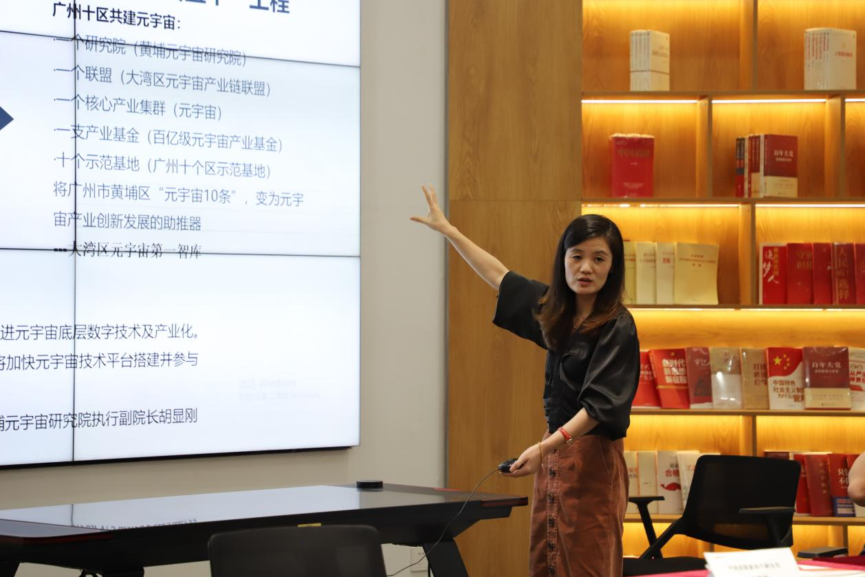 胡显刚博士陪同郭银华教授一行参观广纳院展厅,并为郭银华教授一行介绍广纳院的发展历程以及发展现状。随后,双方就如何推进华商子弥元宇宙产业学院建设展开座谈交流。