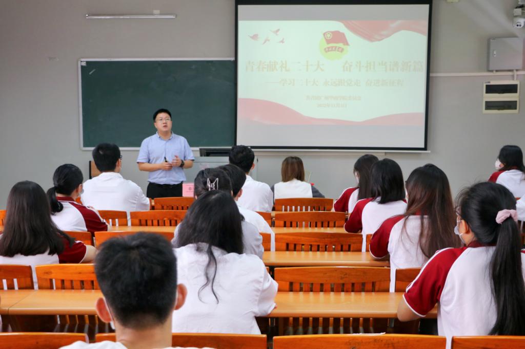 陈刚书记领学党的二十大精神。他以习近平总书记对当代青年的寄语为切入点,列举数据,回顾大会召开细节,详细解读党的二十大报告内容。他强调,党的二十大报告,凝聚党心民心,全面总结过去五年工作和新时代十年的伟大变革,提出开辟马克思主义中国化时代化新境界新要求,擘画迈向全面建设社会主义现代化国家新征程、向第二个百年奋斗目标进军的宏伟蓝图,鼓励各社团负责人将社团发展与时代课题相结合,在社团管理建设、活动举办等方面展现青年智慧与责任担当。希望社团加强品牌建设,形成具有社团特色的文化氛围,向优秀社团看齐。