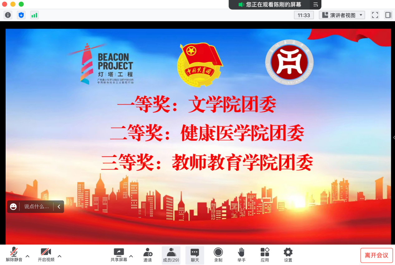 会上,党委副书记兼纪委书记、王锦秀副校长宣读新伟德国际19462022年度“青年大学习”网上主题团课先进集体的表彰通知。她鼓励各二级学院团委以此次表彰为动力,在2023年“青年大学习”网上主题团课中,更加积极学、主动学,融会贯通、深入实践,在奋斗中释放青春激情,让青春之花在不懈奋斗中绚丽绽放。