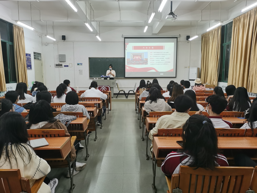 数据科学学院21级计算机科学与技术4班团支部于11月14日开展“学习二十大,永远跟党走,奋进新征程”主题团日活动。数据科学学院团委书记谢嘉希老师领学党的二十大精神。谢书记紧紧围绕党的二十大报告原文内容,深入浅出地分析了二十大精神内涵实质和战略安排,引领同学们深刻领悟“两个确立”的决定性意义,增强“四个意识”,坚定“四个自信”,做到“两个维护”,让同学们深刻领悟党的二十大精神。