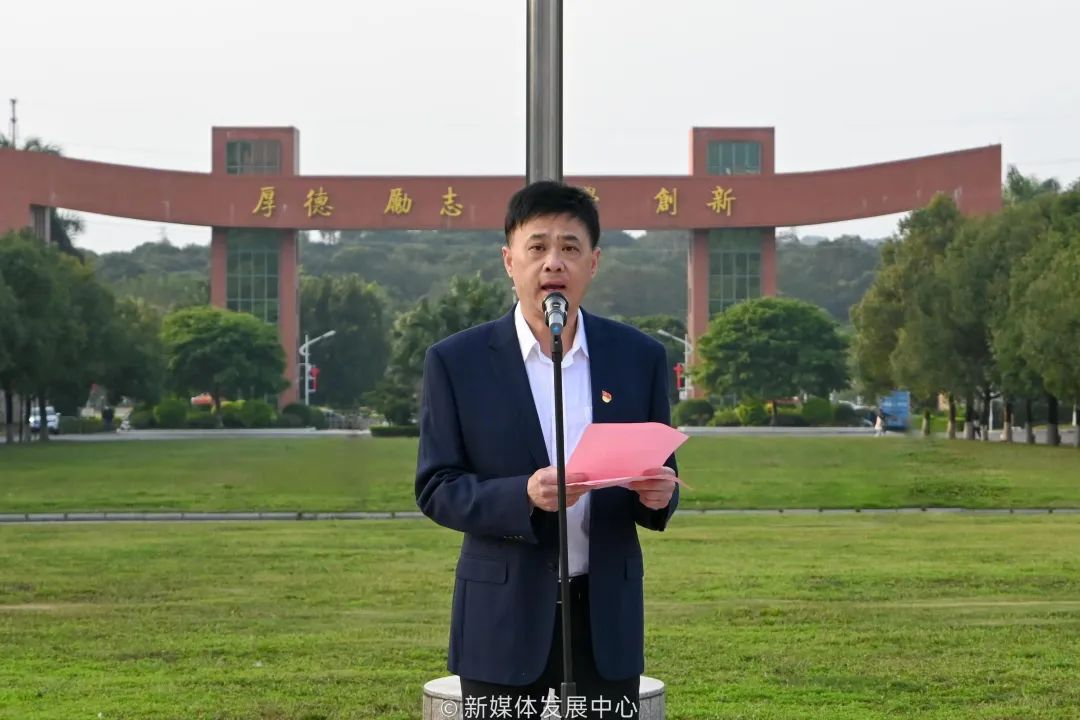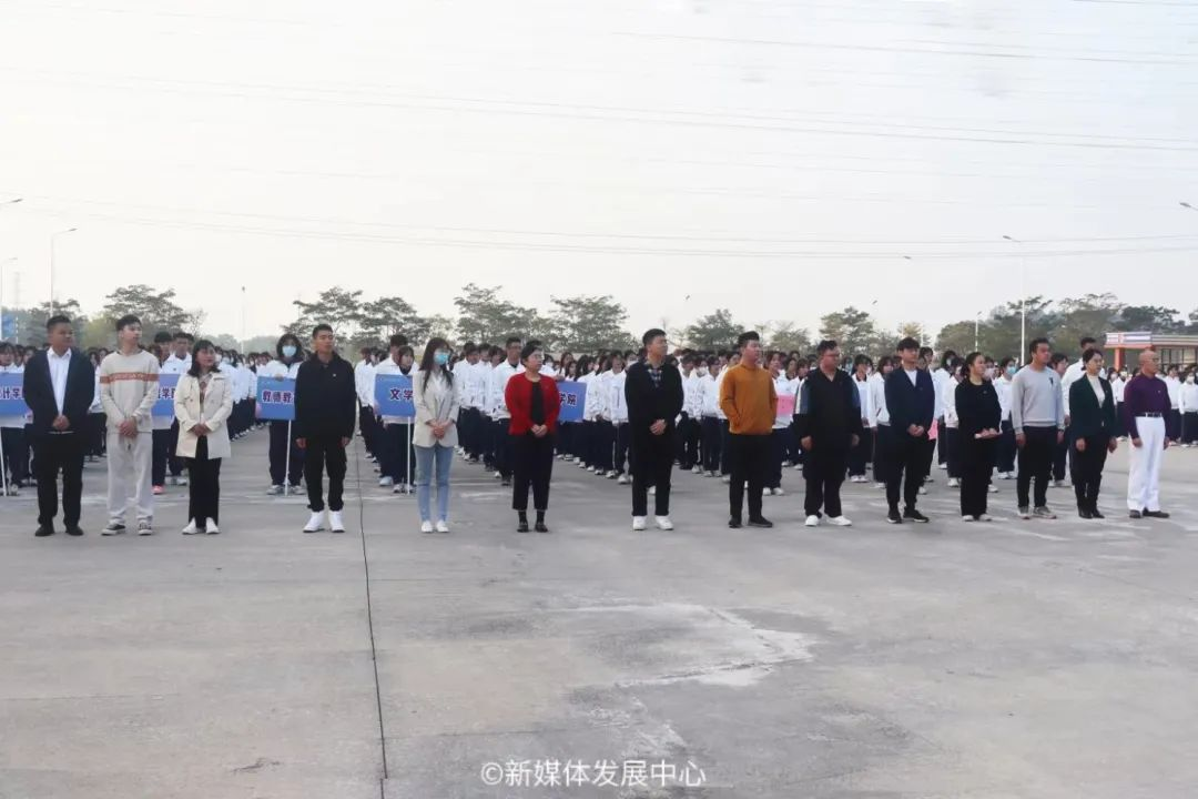 最是一年春好处,奋揖扬帆正当时。为进一步学习贯彻落实党的二十大精神,加强爱国主义教育,增强师生爱党、爱国、爱校意识,2月20日上午,在学校党委的指导下,我校团委在增城、四会两校区同时举行2022-2023学年第二学期开学升旗仪式暨思政第一课。出席本次升旗仪式的领导和老师包括:学校党委苏宁书记,四会校区党委书记王卫平副校长,校长助理、四会校区管委会常务副主任兼四会校区党政办覃少冰主任,党委宣传部刘苗部长,校团委陈刚书记,校团委挂职副书记任欣鹭老师,校团委兼职副书记朱宁宁老师,校团委常委、国际学院团委书记杨李军老师,校团委老师、各二级学院团学老师、学团办教师代表、团学学生骨干、青马班学员、团支书、学生社团代表以及团员青年代表等。