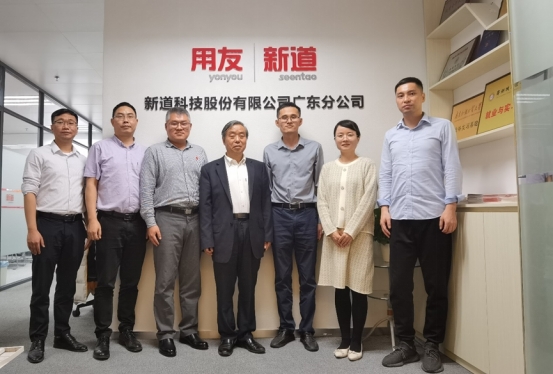 当日14时,管理学院院长李招忠一行,来到了新道科技股份有限公司广东分公司(以下简称新道),为搭建校企合作桥梁,提升毕业生就业质量,开展座谈。座谈开始前,新道教育规划总监、教育服务总监魏闯向李招忠院长一行介绍了企业的发展前景及规划。