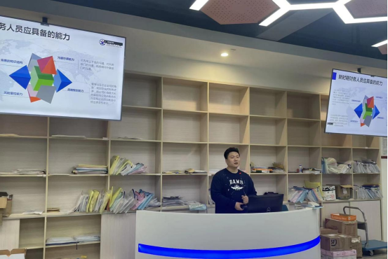 正誉集团财务负责人杨涛为同学们系统介绍了财务共享中心,是工序化标准化的处理流程。同学们进入基地后,要尽快完成角色转换,作为准职场人不仅应该具备专业知识,还应具有沟通协调能力,风险管控能力和战略规划能力。杨总重点介绍了课程的考核方式,本期新增了积分考核制度能让同学们更清晰明确目标。最后希望同学们要端正学习及工作态度,遇见问题随时请教老师。
