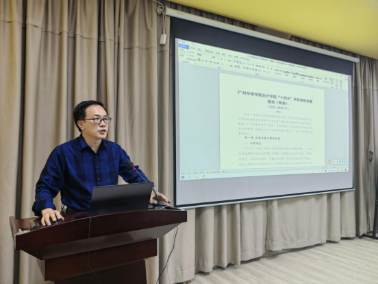 会上,副院长刘善球教授总结回顾了会计学院“十三五”期间工作情况。“十三五”期间,会计学院获市厅级以上教科研课题37项,发表核心论文26篇,出版教材专著26部,横向课题8项,其中教育部高教司产学合作协同育人6项,横向合作经费总额到达45万元。民营企业会计研究所、大湾区税制研究中心、管理会计研究中心、绩效审计研究中心工作开展稳步推进。但面临教科研项目发展不协调,省部级重点科研平台和重点研究基地缺乏、国家级科研项目欠缺,高水平论文不多的现状。