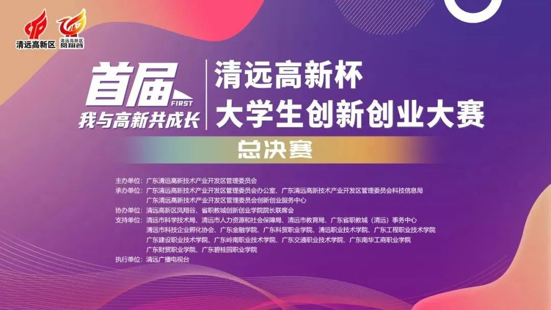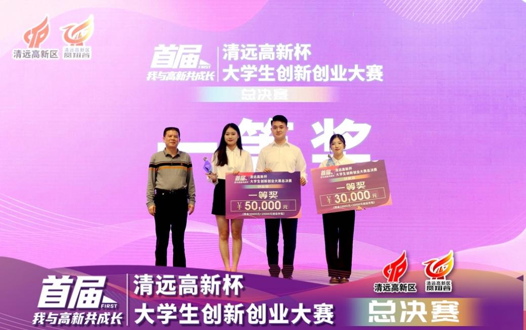 首届“清远高新杯”大学生创新创业大赛由清远高新区管委会主办,清远高新区管委会办公室、清远高新区科技信息局、清远高新区创新创业服务中心承办,清远高新区凤翔谷、省职教城创新创业学院院长联席会协办。本届比赛项目涉及新材料、智能制造、文创、生物科技等领域,分创业组、创意组2个赛道,每个赛道有16个项目入围总决赛,共32个项目入围总决赛。经过激烈角逐,我校稚影传媒项目脱颖而出,获得创业组一等奖,并获得五万元奖励。