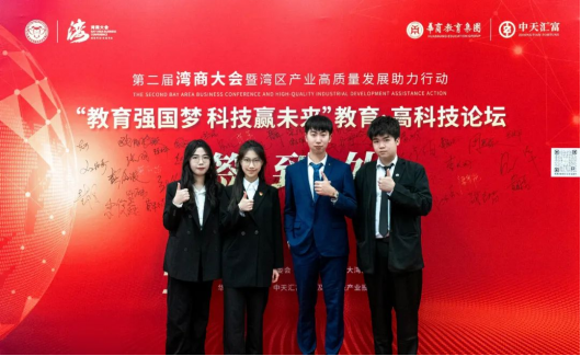 非常感谢学校团委给我们这次机会作为“挑战杯”队伍代表参加第二届“湾商大会”暨“教育强国梦,科技赢未来”高峰论坛。本次会议聚焦中国市现代化,聚合湾商力量,多名行业专家围绕着智能制造、量子计算、人工智能等科技产业的发展趋势以及科教实践经验进行分享。