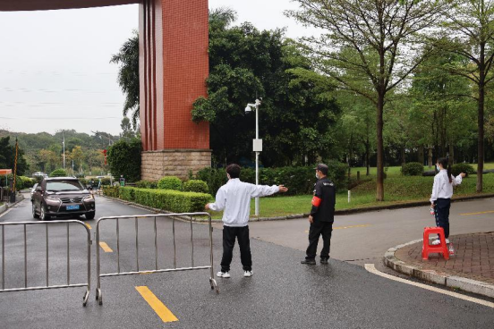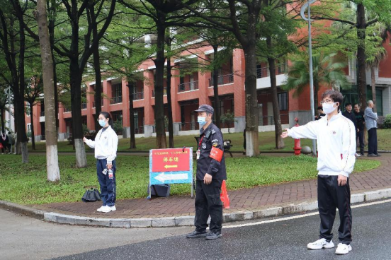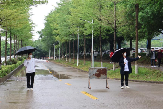 校园的各个角落都有志愿者坚守岗位,他们在每个路口为同学们做指引,耐心地解答同学们的问题,他们的身影在校园里形成了一道亮丽的风景线。