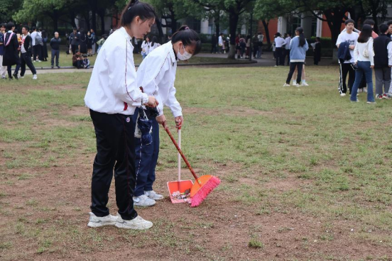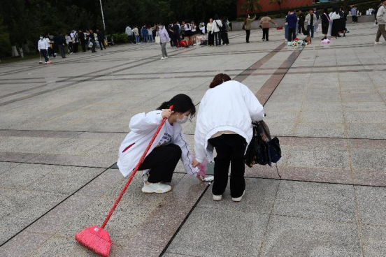 毕业照拍摄临近尾声,志愿者们细心地清扫着草坪上、校道上的垃圾,他们辛勤劳动、团结彼此,在美化校园环境的同时,增强了同学们的责任感与荣誉感。