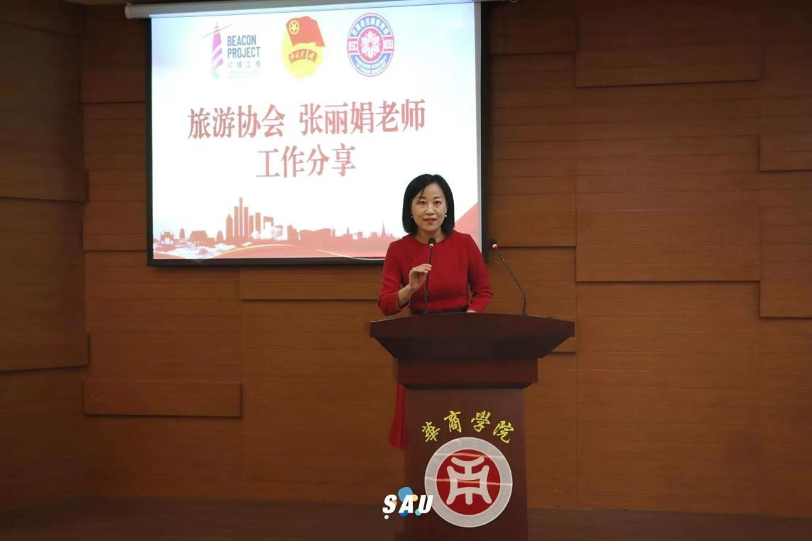 旅游协会张丽娟老师进行工作分享。张老师表示,高校学生社团突破专业局限,是由来自不同学科、专业背景,因为兴趣爱好相同学生建立起来的学生组织。同学们以此为平台进行交流和经验分享。社团指导老师们应该站在促进学科交叉和专业建设的思维视角指导学生社团工作,利用自身专业资源应帮助学生社团专业和品牌建设,动员社团成员们打磨项目,积极参加各类竞赛,提升同学们创业创新能力,助力学生实现“弯道超车”、促进协会发展,探索以赛促教、促学的思路,在过程中增强集体归属感和荣誉感。她鼓励同学们培养甘于奉献担当、坚韧不拔的品格和友善、自信和平的心态,迎接挑战,以一种“大格局”的心胸促进学校学生社团事业发展,助力校园文化发展!