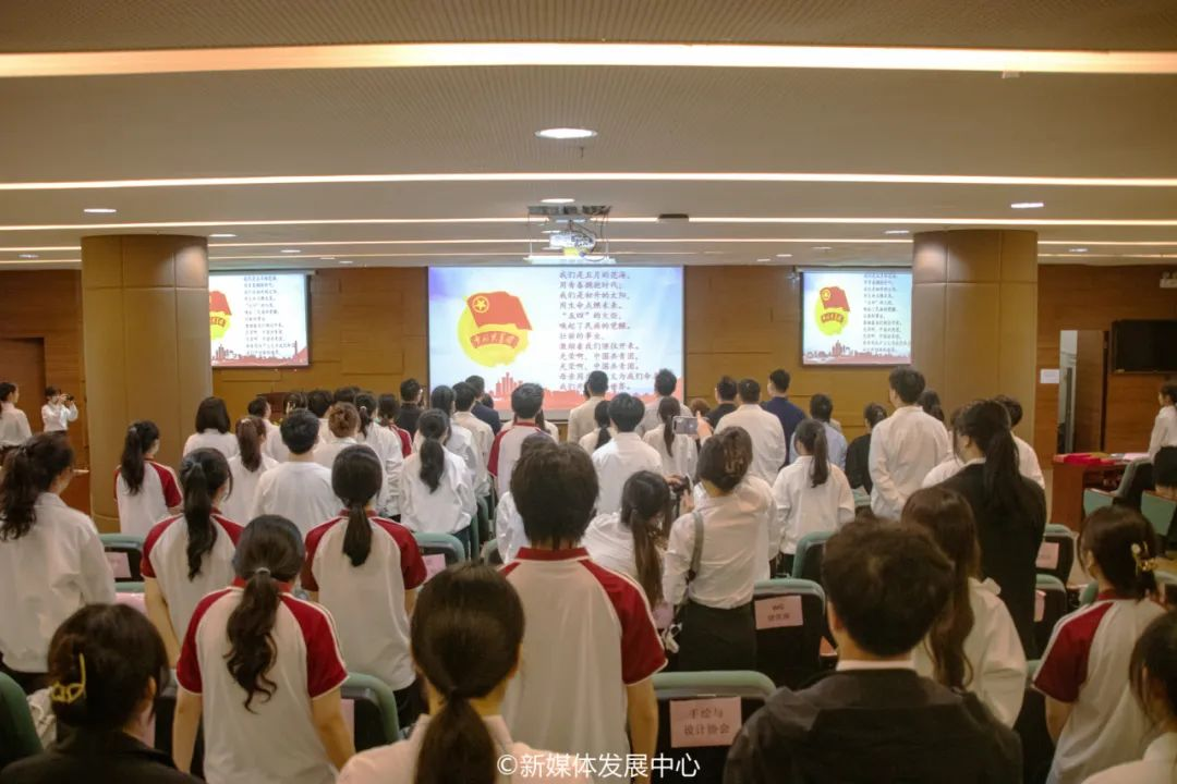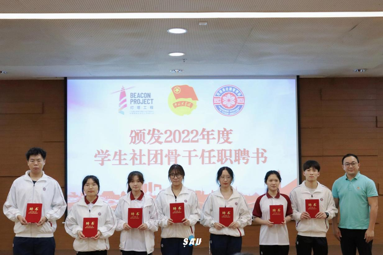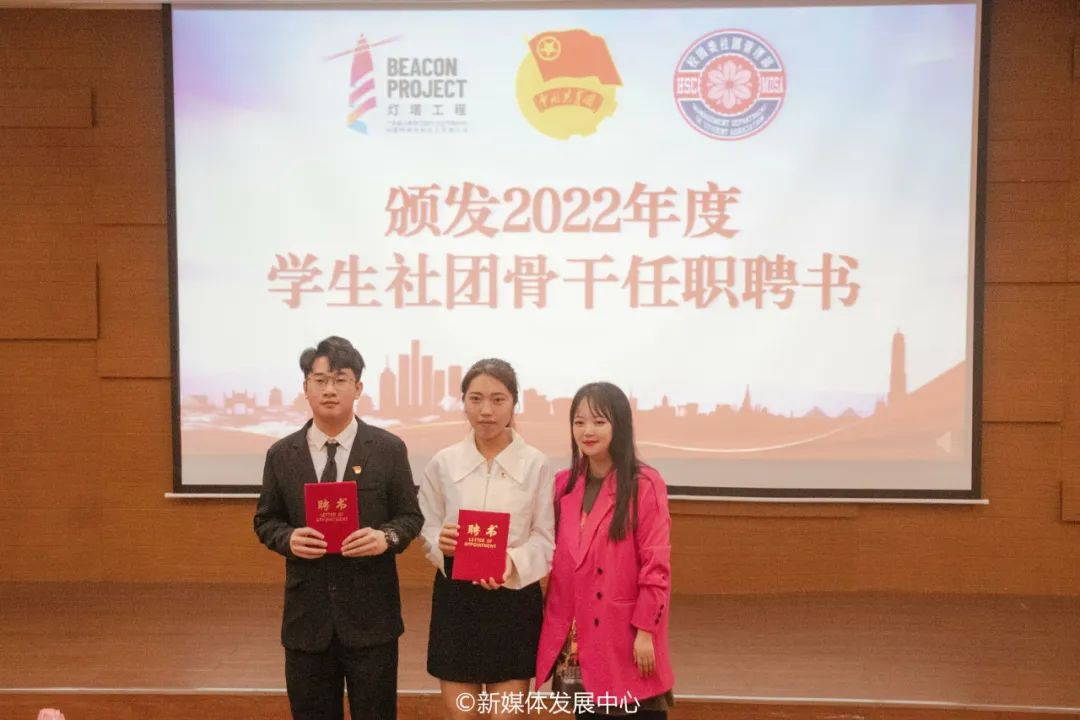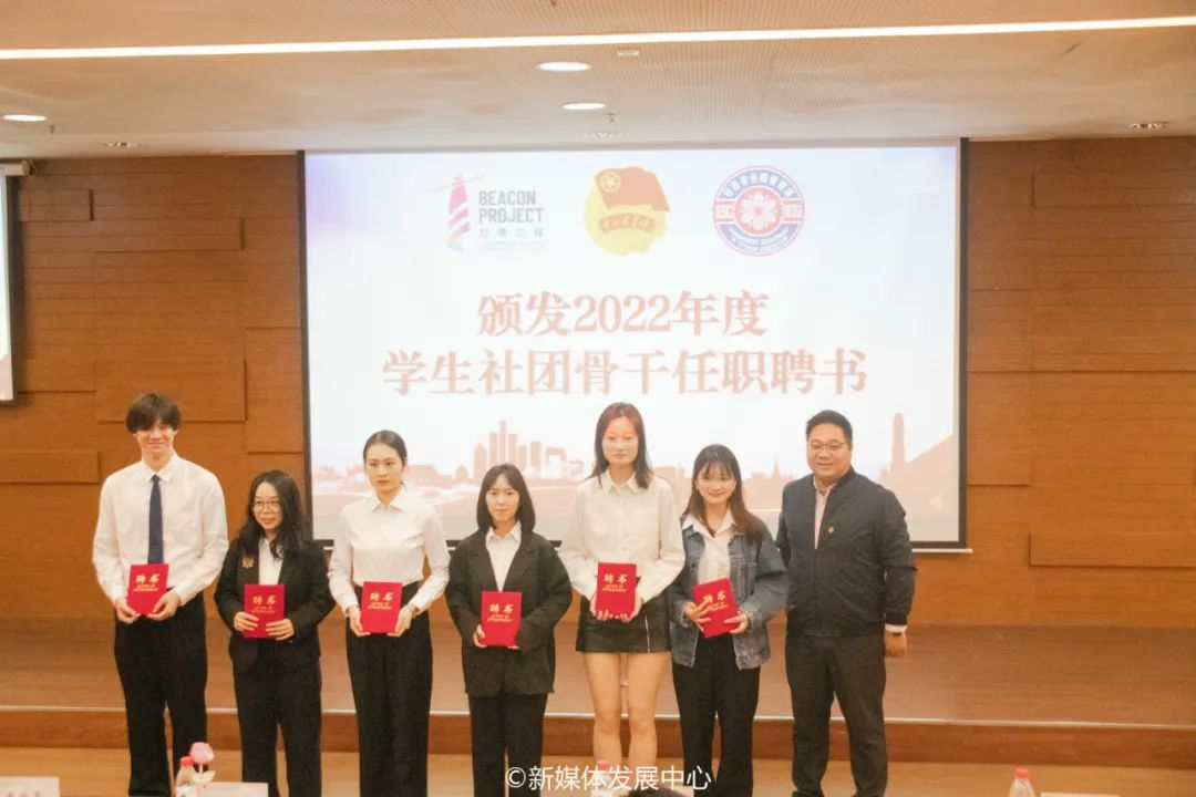 大会在激昂的团歌声中拉开序幕。随后,现场师生观看2022年度新伟德国际1946学生社团总结视频。一年来,我校31个不同性质的学生社团在学校党委、行政及各职能部门的关怀与支持下,始终坚持党管学生社团的工作理念,听党话、跟当走,持续深化改革,广泛开展阳光健康、积极向上的社团活动,在国家级、省市级各类比赛、活动中取得多项荣誉成果,充分展现我校学生社团青春风采,涌现一批华商特色的品牌社团,形成“一社一品”的良好局面。