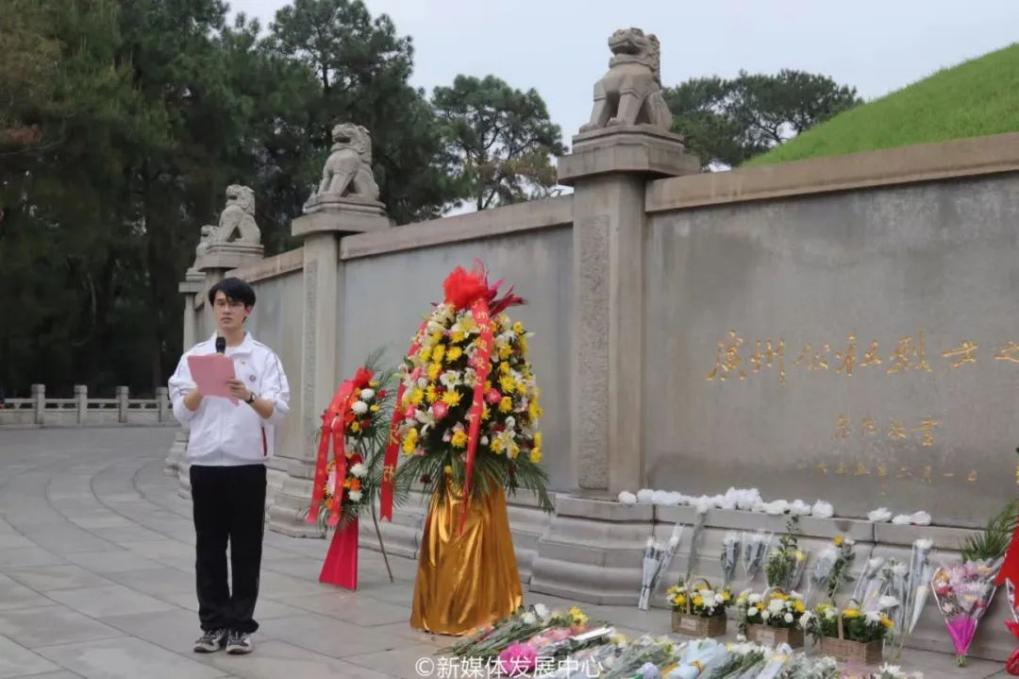 学生代表史梓健发言。他表示,斯人虽逝,精神永存,革命先烈的无畏精神将激励着我们前行。我们要铭记烈士们的遗愿,永志不忘他们为之流血牺牲的伟大理想,要把对革命先烈的悼念化为爱国爱党的浓厚情感。传承先烈遗志,弘扬先烈精神,在学思践悟中砥砺思想、磨练本领,以更加昂扬的精神状态和奋斗姿态肩负起青年一代的使命和责任,为全面建设社会主义现代化国家、全面推进中华民族伟大复兴而团结奋斗。