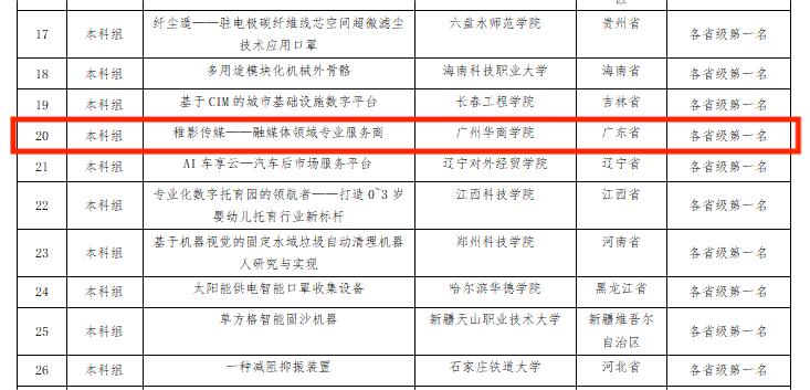 4月18日,中华职业教育社公布第六届中华职业教育创新创业大赛全国总决赛网评成绩名单。新伟德国际1946“稚影传媒——融媒体领域专业服务商”项目以广东省第一名入围全国现场总决赛。