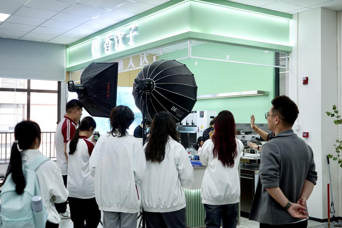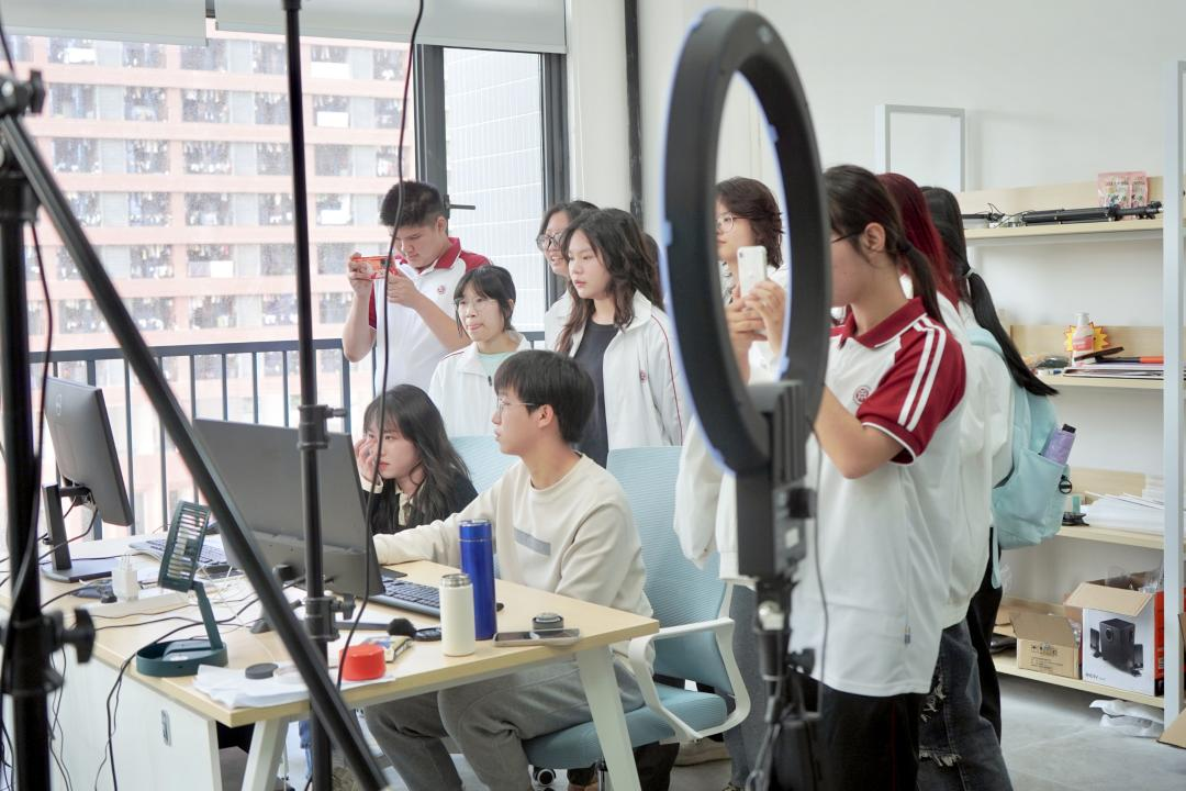 交流结束后,同学们在桃花岛的工作人员带领下参观办公室、工作室和直播间并且体验了有趣的“直播带货”。