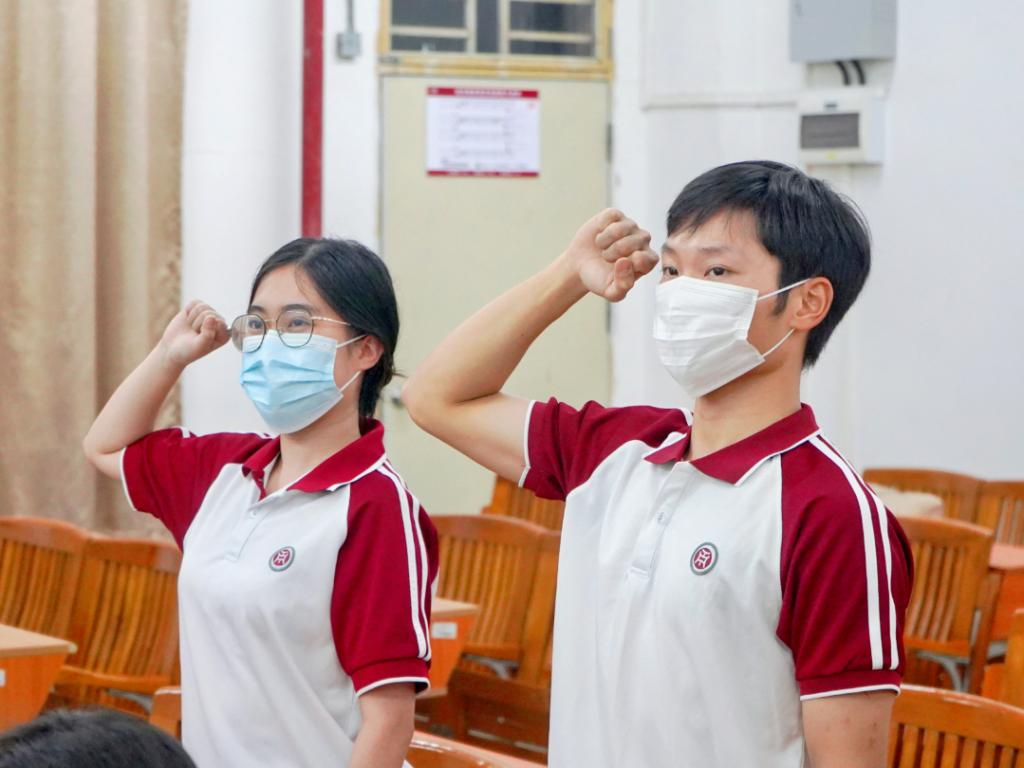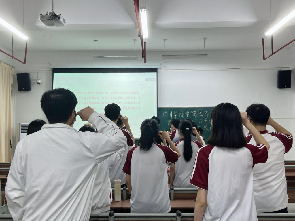 青马班所有学员进行宣誓:作为青马班的一员,将努力提高思想政治素质,坚定自身理想信念,促进自身全面发展;投身实践,乐于奉献;自觉遵守班级管理条例,严于律己。在学院育人过程中起到良好的榜样作用,成为德智体美劳全面发展的社会主义建设者和接班人!