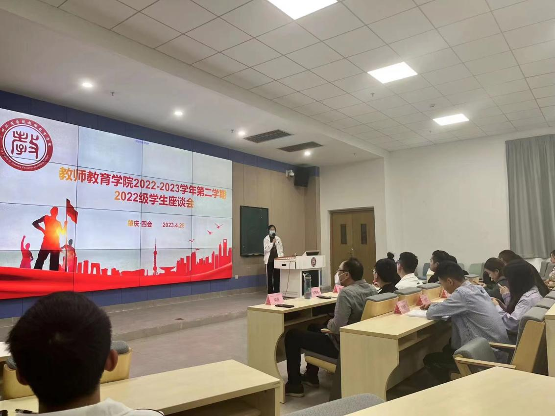 为深入了解开学以来教师教育学院学生在校学习、生活情况,搭建师生紧密联系的桥梁,教师教育学院于教学周第十周分别在增城校区和四会校区开展2022-2023学年第二学期期中座谈会。座谈会于4月25日分别在励志楼A202和8号楼108召开,学院领导、系部教师代表、辅导员代表和各班级学生代表参加。各班学委以及学生代表在会上提出在学习生活上遇到的各种问题。
