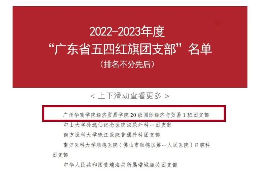 近日,共青团广东省委员会发布了2022-2023年度广东省五四红旗团委(标兵)、五四红旗团支部(标兵)、优秀共青团员和优秀共青团干部名单,我校经济贸易学院20级国际经济与贸易1班团支部荣获“广东省五四红旗团支部”称号,周婧同学荣获“广东省优秀共青团员”称号。