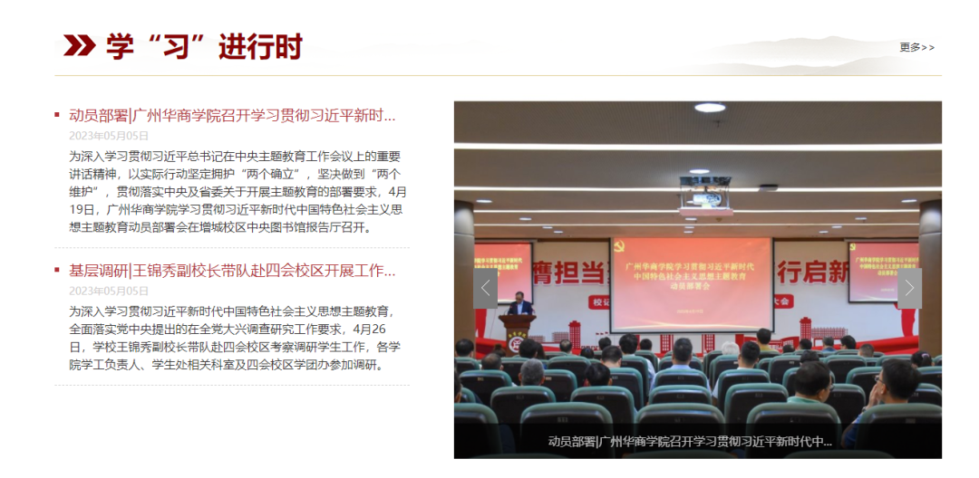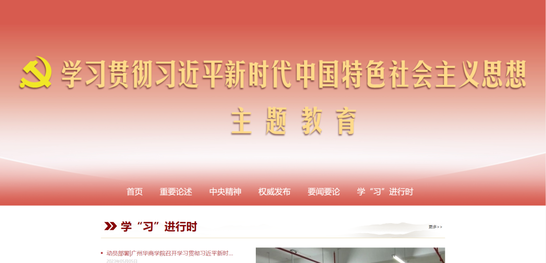 学校主题教育专题网站设有“重要论述”“中央精神”“权威发布”“要闻要论”“学‘习’进行时”等栏目,在伟的国际1946bv官网主页设置入口链接。为全校师生跟进学习习近平新时代中国特色社会主义思想,及时了解学校主题教育开展情况提供信息平台。