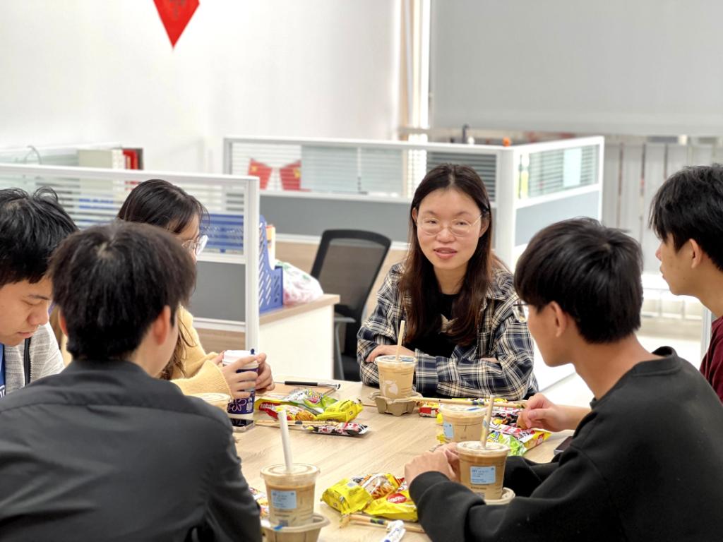 茶话会上,兼职辅导员梁敏琪先以增城校区教学环境、教学设备等方面展开话题,围绕学习生活、学生工作状况以及未来发展方向三个主题,与同学们进行讨论与交流。