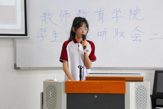 针对以上提议,学生会主席团成员陈泳思首先肯定了学生代表们的细微观察能力,发现问题敢于提出意见的态度。随后她表示,学校在未来的发展中,将一如既往地重视学生的意见和建议,不断完善学校的各项制度和设施,为学生提供更好的学习和生活环境。同时,她希望在未来会有越来越多的同学敢于发现问题并提出自己的想法。