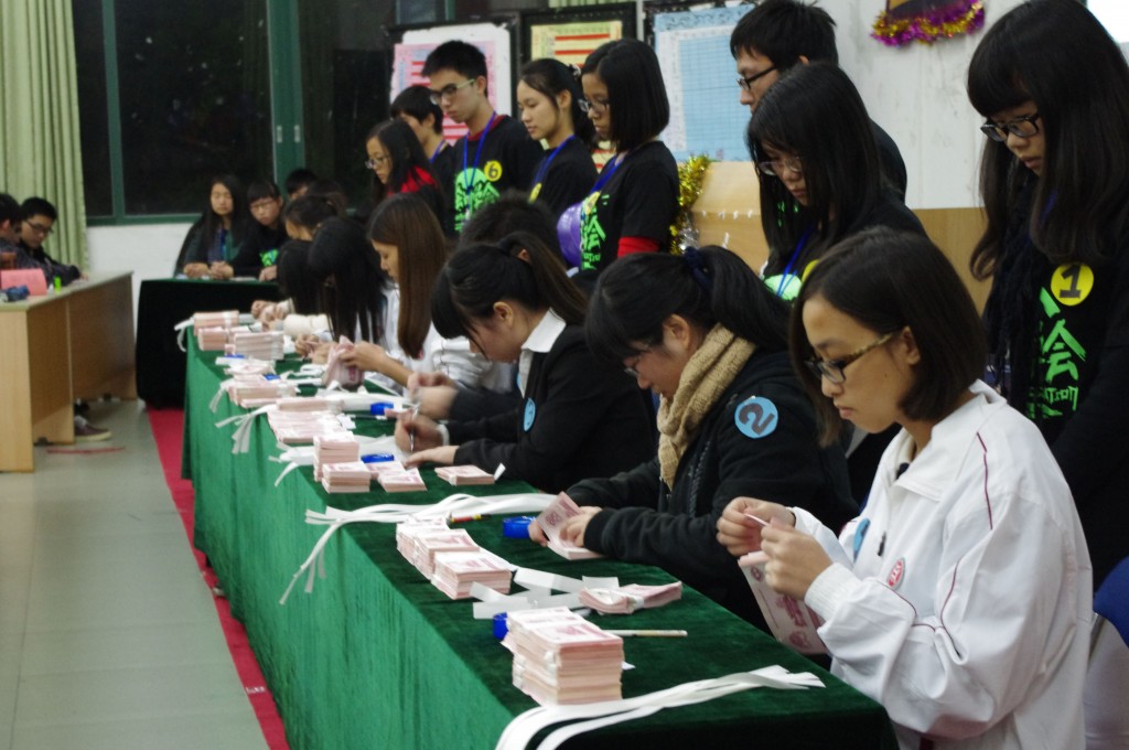 为了加强会计专业技能的实训,提高会计专业学生对专业知识的认识,激发学生学习会计技能知识的兴趣,在2013年12月17日晚上,由广东财经大学华商学院教务处主办、广东财经大学华商学院会计系承办的广东财经大学华商学院首届专业技能大赛之会计实务大赛决赛在励志楼B208举行。教务处郭银华处长、会计系主任马玉珍教授、副主任柳学坤教授、学生工作副主任许娜老师、会计实训教研室主任杨咏梅、比赛专业指导老师陈平以及会计系部分老师和全体辅导员出席了本次大赛。本次进入决赛的选手真可谓过五关斩六将,通过层层的选拔留到决赛。决赛的形式以团体参赛,40名选手被分为5人一组,其中1名同学负责多指点钞、1名同学负责单指点钞、其他3名同学负责做账。