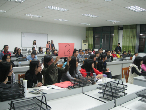 2013年11月26日晚上6点半,财务管理知识竞赛复赛在厚德楼A502、503举行。会计系团总支书记吴泽佳、编委会指导老师杨烨瀚、专业指导老师杨勇等嘉宾参加本次大赛。