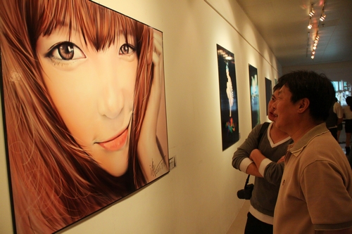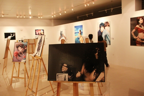 会展厅里到处都呈现着浓郁的艺术气息。大屏幕上一部部动画作品,生动的展示了艺术的美态;墙上一幅幅原创插图,精美的绽放着艺术气息。《QS》的魔幻动感,《不羁》的唯美婉约……不一样的创作风格,不一样的表现形式,不一样的艺术效果,将一幅幅或抽象或具体、或简约或深奥、或现实或梦幻、或清新或亮丽的作品展现在众人面前,艺术韵味十足,在曼妙的灯光、优美的音乐的配合中,让人置身于梦幻之中尽情领略着艺术的魅力,流连忘返。