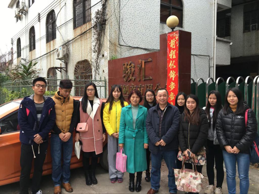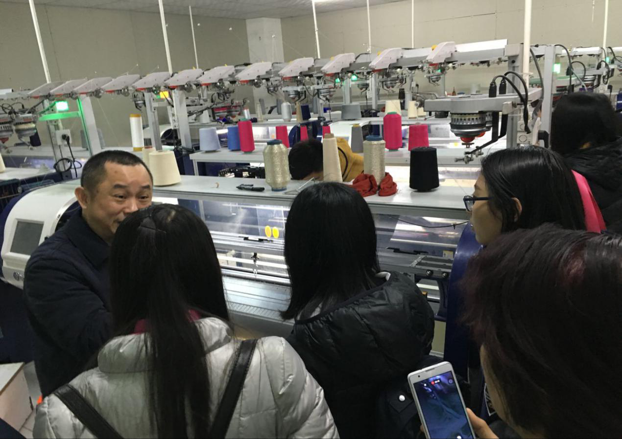 该公司座落于广州市增城新塘水南村,成立已有20余年,是一家以外贸订单为主的生产型公司,现已逐渐成为国外品牌的外贸加工厂。陈经理随后带领王教授等一行参观工厂生产线,向大家讲授工厂的生产运营模式,以及对于工厂日后的展望,这些都让同学们对于外贸专业知识的有了更为深刻的认识。