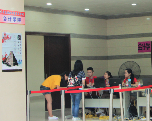 9月7日,广东财经大学华商会计学院2016年迎新工作有序开展,来自五湖四海的1711余名新生陆续报到,加入会计学院大家庭。期间 会计学院院长马玉珍、副院长许娜先后到会计学院各个迎新接待点检查指导迎新工作。主管学生工作副院长许娜更是从早到晚,坚持在迎新第一线岗位,热情帮助新生和家长解决各种问题。