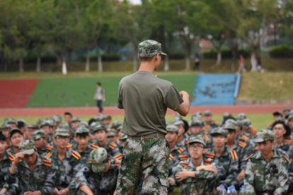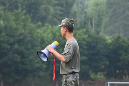 让同学们在艳阳下反复练习正步的是他们;看同学训练辛苦悄悄给小休息的也是他们。他们是教官,是接受过正规化训练的,知道怎样带好“兵”。