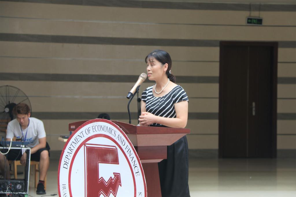 而后我系分管教学工作张真副主任发言,她希望我们新同学开心生活的同时,作为年轻的一代,要做到三点:第一,要敢想,有想法有创新思维才能志存高远,才能够有新的起点。第二,要敢做,敢做才能激情活跃。第三,要敢破,只有敢破,才能突破自我,创新发展。诚望各位新同学享受大学生活,也能快乐学习。