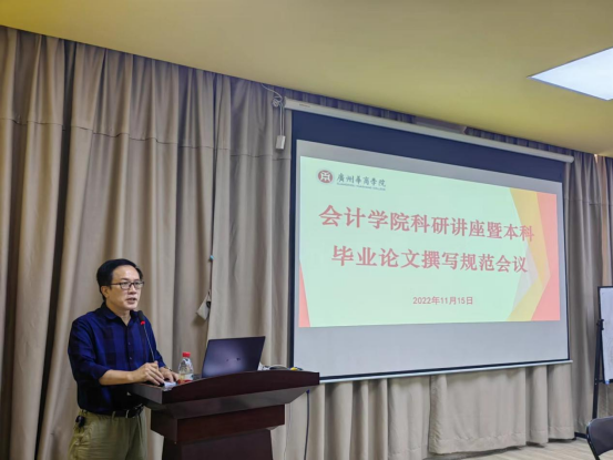 为提升会计学院教师的科研整体水平,规范课题申报,提高教师的论文写作能力,推动学院科研水平再攀新高,11月15日下午,应会计学院邀请,学校科研处处长董建新教授在会计学院报告厅为会计学院教师开设科研讲座。新伟德国际1946副校长兼会计学院院长陈美华教授,会计学院副院长刘善球、杨旻、周书域,各教学系、教研室、实验区负责人、全体专任教师及2021级部分学生参加了报告会,讲座由会计学院副院长刘善球主持。