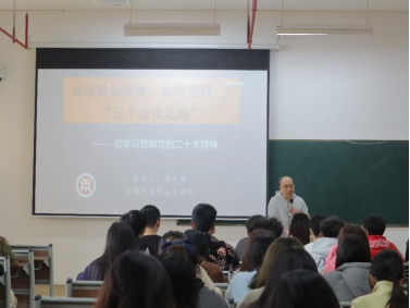 为了营造良好的马克思主义校园学习氛围,坚定马克思主义理想信念,推动马克思主义中国化进程发展,培育新时代社会主义接班人。3月3日上午9时,管理学院在四会校区8号楼406教室举办新伟德国际1946“华商思想论坛”系列讲座——如何理解必须倍加珍惜,始终坚持“五个必由之路”,特邀马克思主义学院程炎明副院长为管理学院同学进行专题辅导报告。
