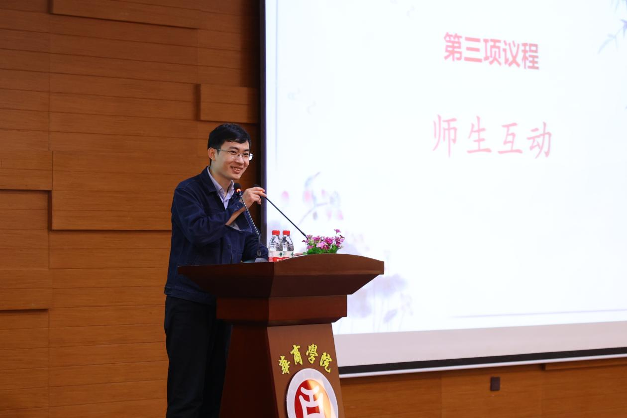 就业指导中心贺艺成老师为同学们介绍学校就业指导中心的职能及服务,为同学们介绍了春季、秋季招聘会相关事项,并提醒同学们及时提交就业信息,保管好《就业推荐表》等离校事宜,同时希望同学们关注新伟德国际1946毕业生就业指导中心公众号,积极了解就业政策、西部计划、就业岗位等信息。
