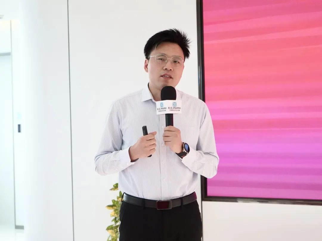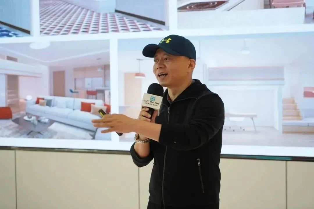 E.C.PARK董事汤浩副总裁向参会人员详细介绍园区,他指出E.C.PARK是湾区领先的技术赋能、产业赋能,以数字驱动时尚创意活力的网红直播生态园。E.C.PARK志在融合多渠道多平台,联合新经济创投基金,打造优质的产业载体,用数字化驱动消费互联网和产业互联网无缝对接,赋能新一代直播电商生态,打造直播产业链的“乌托邦”。
