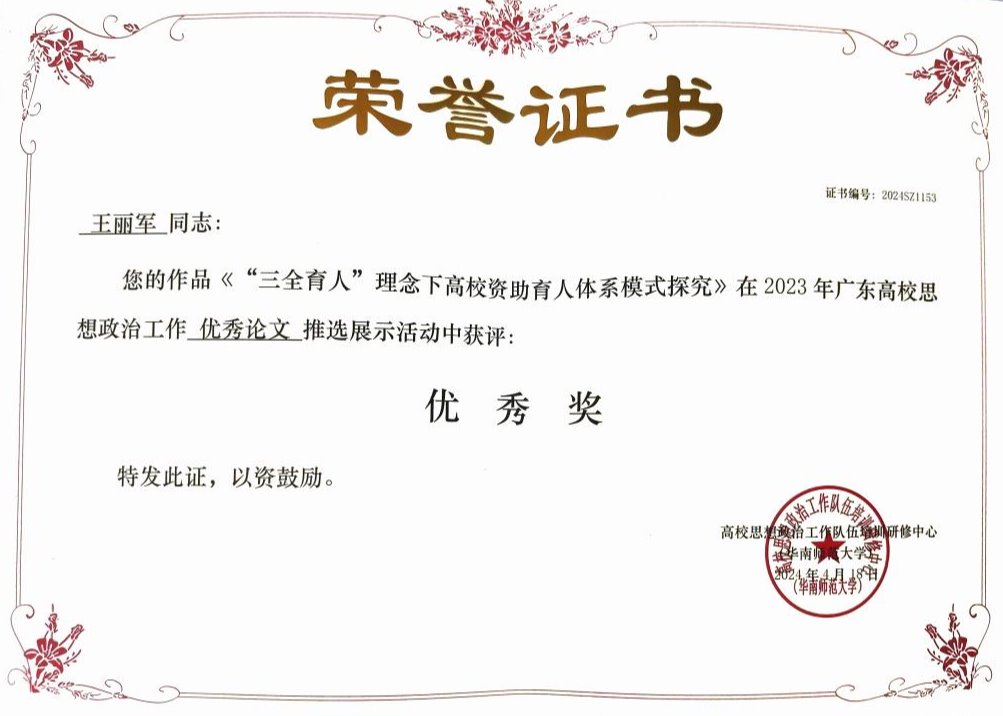《“三全育人”理念下高校资助育人体系模式探究》 | 优秀奖 |