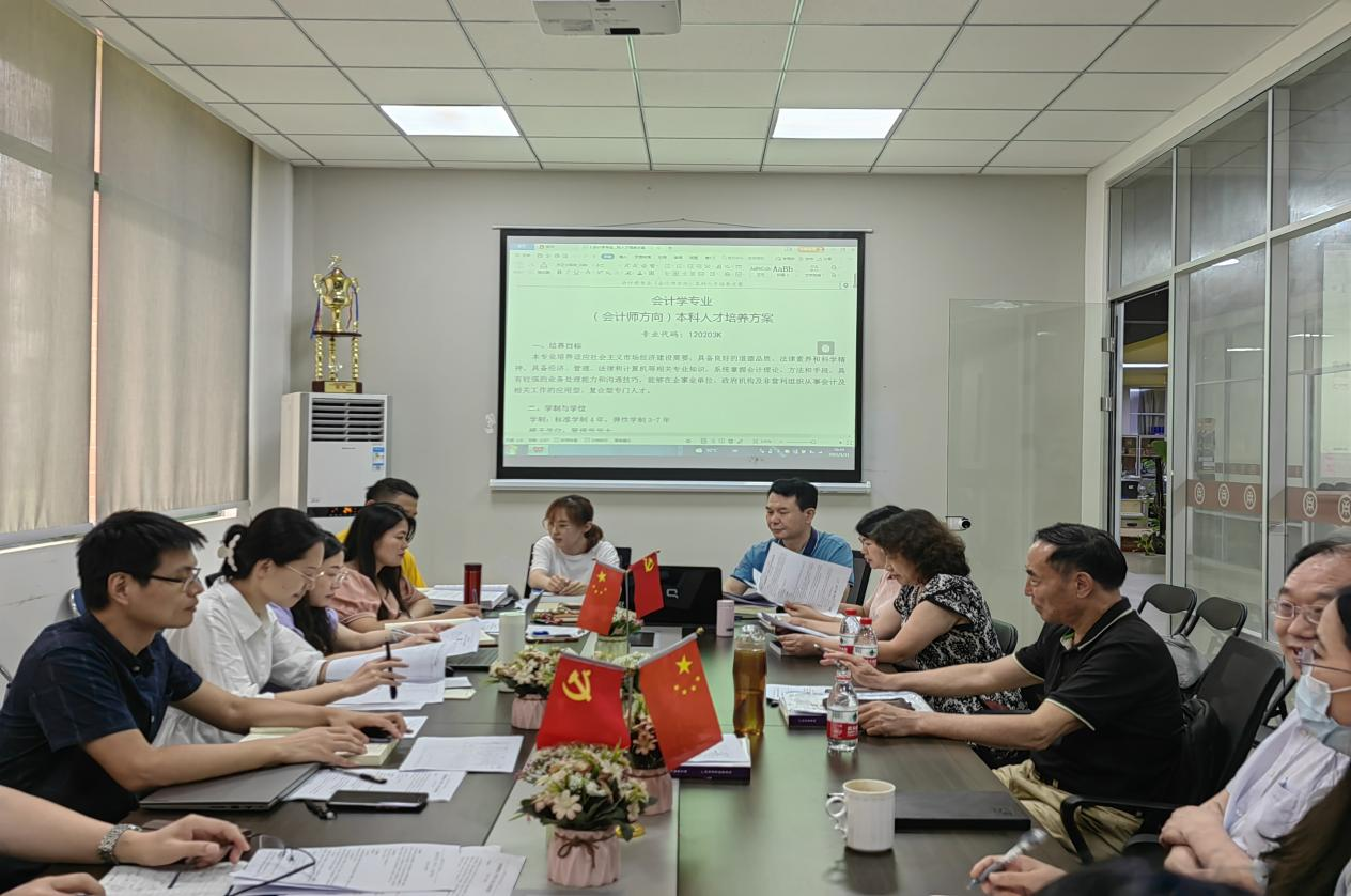 与会人员针对2022级本科人才培养方案进行修订。陈美华副校长及学院领导认真听取了会计学、财务管理、审计学、税收学四个专业人才培养方案的修订情况。陈美华副校长指出几点意见:一是坚持准确定位,彰显专业特色。人才培养方案要充分体现我校“应用型”办学定位,专业培养目标与学校办学定位相一致,各专业课程设置要彰显不同专业的人才培养特色。二是坚持以学生为中心。课程体系中适当增加实训实验课程,重视学生实践能力和创新能力的培养。三是要坚持产出导向思想。重视用人单位的意见,坚持与时俱进,持续改进人才培养方案,培养更多的满足社会经济发展需求的人才。