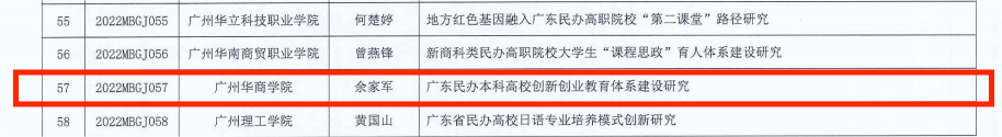 根据《关于组织开展广东省高等教育学会民办高等教育专业委员会2022年度课题申报工作的通知》等相关文件要求,经学校遴选推荐、省教育厅审核、评审、公示及异议复审等环节,我校余家军老师主持的“广东民办本科高校创新创业教育体系建设研究”项目获广东省高等教育学会民办高等教育专业委员会2022年度研究课题立项。