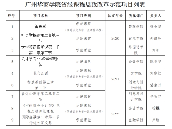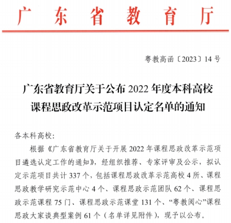4月11日,广东省教育厅发布了《广东省教育厅关于公布2022年度本科高校课程思政改革示范项目认定名单的通知粤教高函》(粤教高函〔2023〕14号),新伟德国际1946共有2项课程思政改革示范项目被认定为省级课程思政改革示范项目,其中会计学院的《中级财务会计学》被认定为课程思政示范课程,金融学院的《国际金融第二章第一节传统外汇交易》被认定为课程思政示范课堂。获评为课程思政示范课程的,将同时认定为省级一流本科课程。